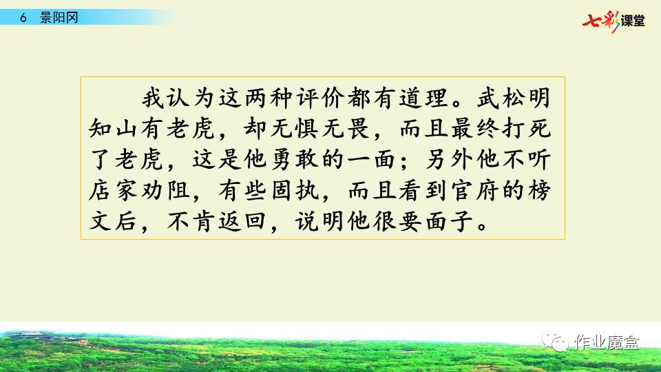 4、 对于课文中的武松,人们有不同的评价。你有什么看法?说说你的理由。