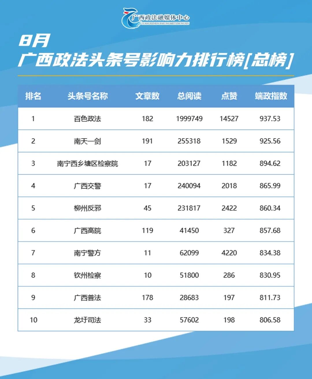 全区政法系统充分利用头条号、抖音号坚持语态创新、叙事创新、形式创新,全面深入宣传我区民族团结、社会稳定、边疆安宁的良好局面,深入宣传提升矛盾纠纷预防化解法治化水平,深入宣传锻造忠诚干净担当的新时代政法铁军,为努力建设更高水平的平安广西、法治广西营造良好舆论氛围。