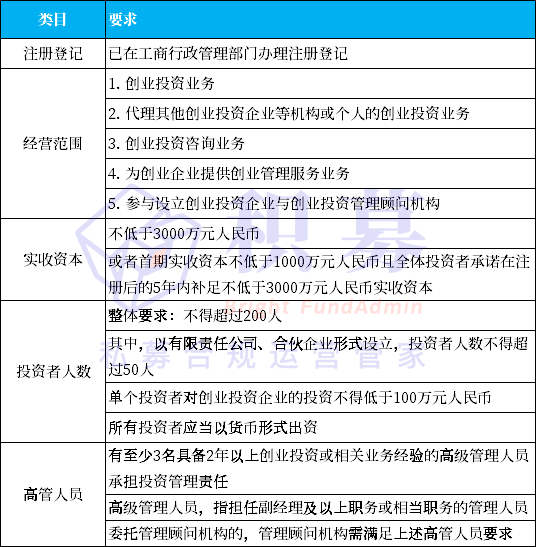 在申请主体上,可以是有限责任公司、股份有限公司或者合伙企业等,但必须以创业投资企业本身的名义来申请,而不能以其股东或者合伙人的名义申请,这一点与私募基金备案有所不同,私募基金由管理人在中基协申请备案,备案在管理人的名下。