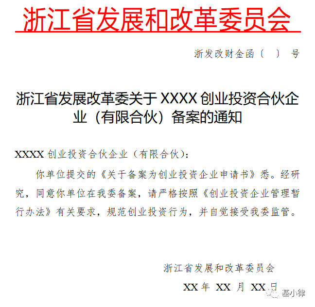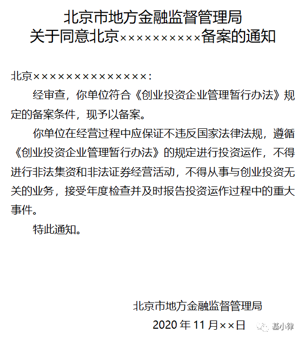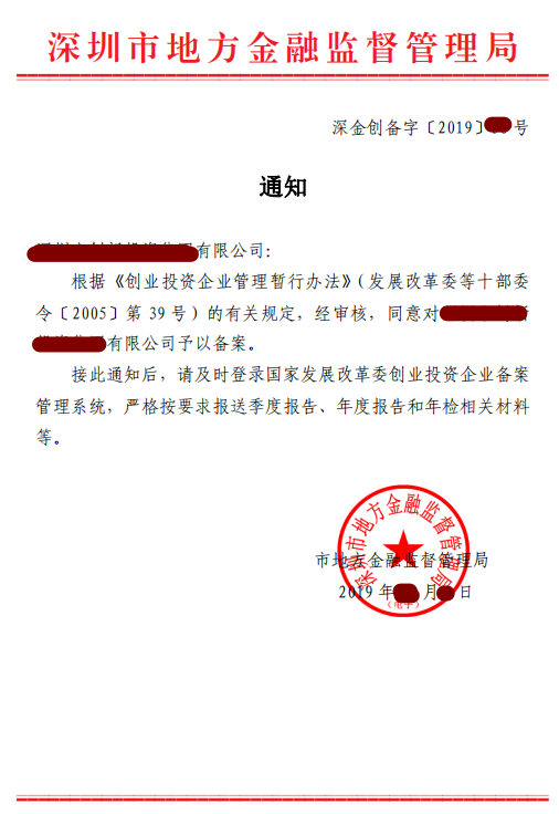 6、制证:针对审批通过的创业投资企业,制定同意创业投资企业备案的通知。
