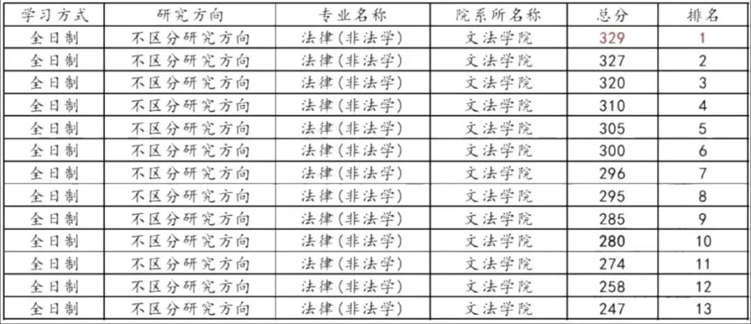 河北科技大学文学院的法律(非法学)专业,一志愿考生的最高分为329分,而国家线为331分,一志愿无人上线。