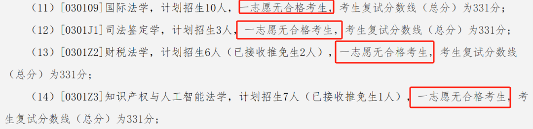 [030201]政治学理论、[030206]国际政治、[030208]外交学专业一志愿无合格考生,考生复试分数线(总分)均为331分;