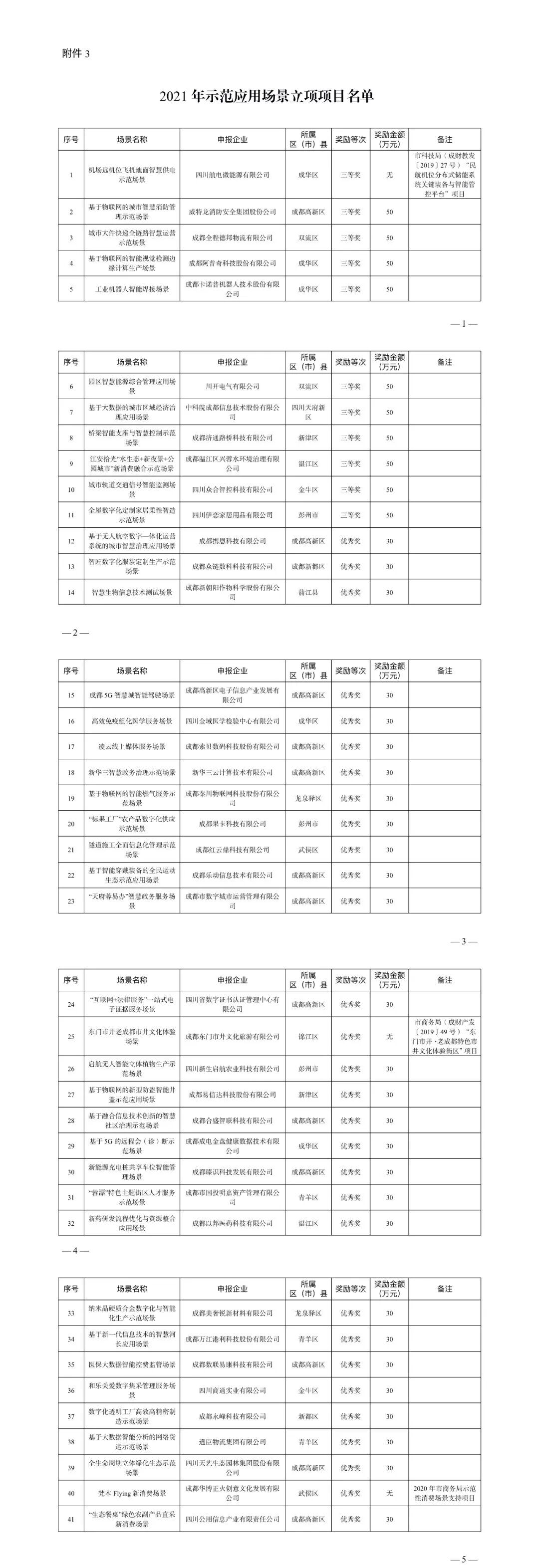 4月11日,成都市新经济发展委员会公布了2021年成都市城市未来场景实验室、应用场景示范区、示范应用场景立项项目。其中涉及6个城市未来场景实验室、6个应用场景示范区、41个示范应用场景项目。