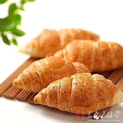 牛角包内含有黄油或“起酥油”,这样的牛角包饱和脂肪和热量含量多,对于减肥人士来说是不能多吃的事物,而且可能含有对心血管健康不利的“反式脂肪酸”,吃这样的面包最好一周别超过一个,减肥人士们最好少吃为妙。