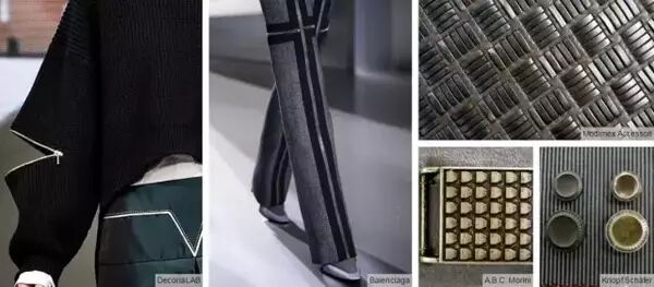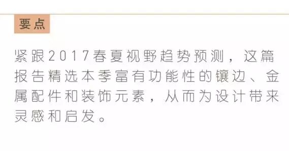 设计志:饰边的装饰功能赋予实用性全新的工业风美感。手工细节、做旧效果和稀薄配色都让金属配件和装饰品显得时尚前卫。