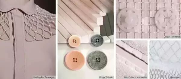 复杂精致的表面越来越重要,三维的形式巧妙地运用到面料底布中。磁吸门襟、蚀刻的角质纽扣和更加新奇的塑料按扣是富有创意的紧固件。管状的绳线饰边打造出精美的格子状图案。